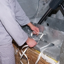 El cuchillo montado sobre el plato permite cortar el fleje a una longitud adecuada.