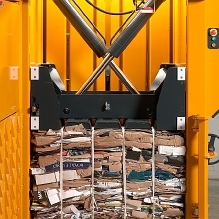 La puerta deslizante se abre automáticamente y queda abajo para un llenado racional de los residuos.