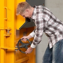 Un eje roscado garantiza una apertura firme y segura de la puerta principal.